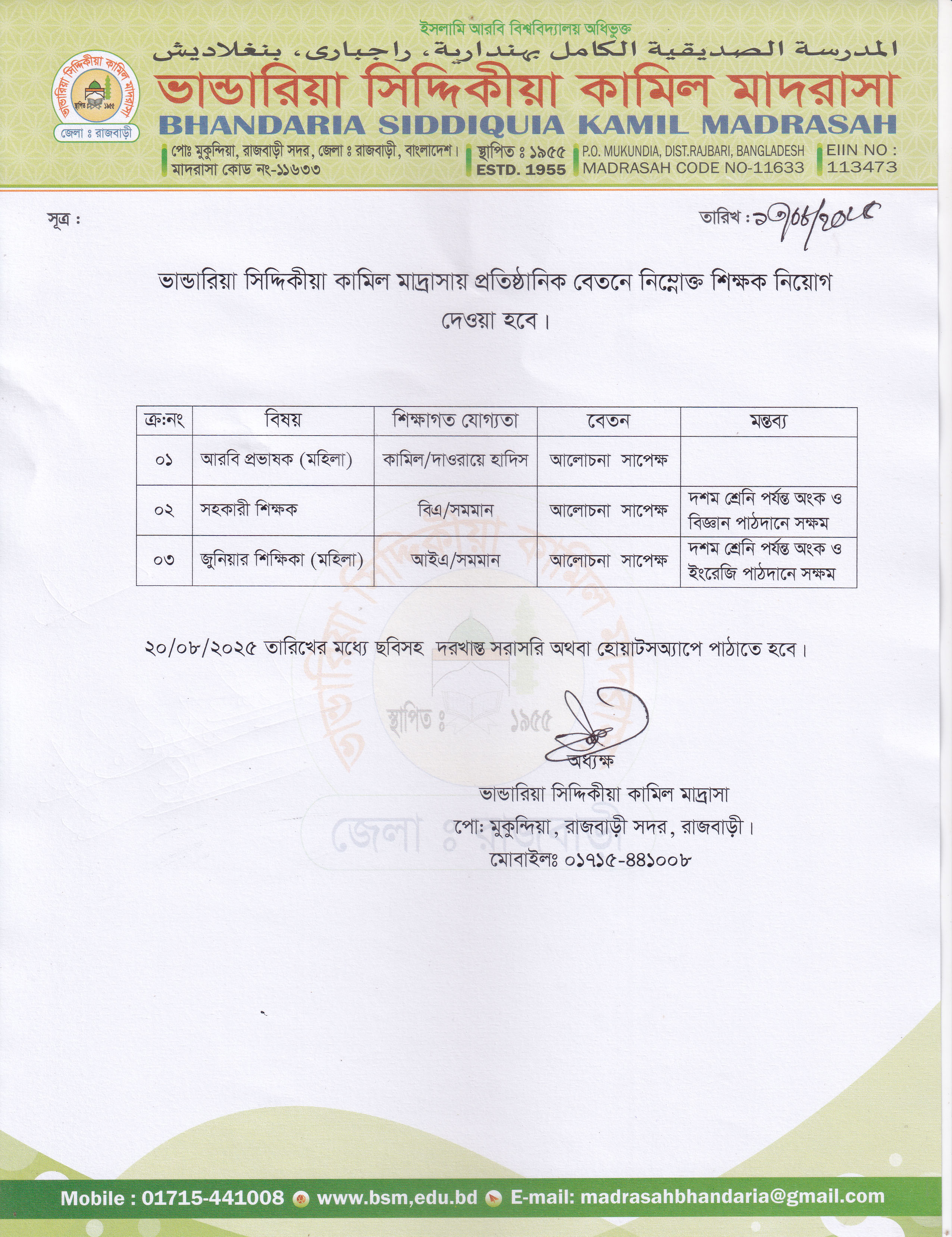 ভান্ডারিয়া সিদ্দিকীয়া কামিল মাদরাসা আপনাকে স্বাগতম